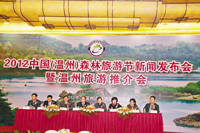 ■2012中國(溫州)森林旅遊節新聞發佈會。 香港文匯報記者白林淼 攝