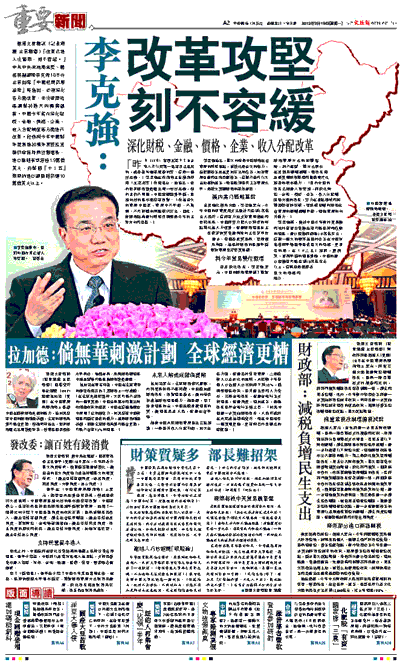 「昨日(17日)夜裡北京下了自去年入冬以來第一場有真正意義的,或者說叫做有規模的雪。這是一個好兆頭。」李克強在作論壇主旨演講時用「北京兆雪」作開場白。他指出,當前世界經濟復甦雖出現一些好兆頭,但前景仍不明朗,中國總體態勢平穩,長期向好的基本面沒有改變。「作為最大的發展中國家,發展中不平衡、不協調、不可持續的問題依然突出。因此,對經濟結構進行戰略性調整是今年的主攻方向和目標。」
