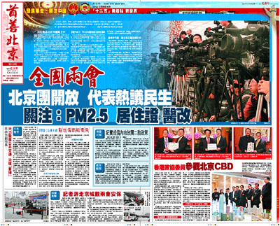 全國兩會 北京團開放 代表熱議民生 關注:PM2.5 居住證 醫改 (2012-03-19) (圖)