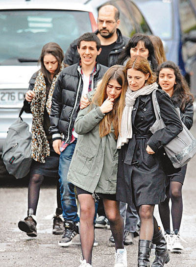 ■學生與家長事後面露悲傷。法新社