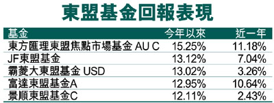 以佔今年以來榜首的東方匯理東盟焦點市場基金為例,主要是透過主要業務來自東盟國家的公司股票,以達致長期資本增值目標。