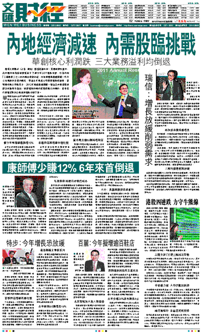 ¡@¥h¦~¤½¥q°à°s·~°ÈÀç·~ÃB¤Î·¸§Q266.9»õ¤¸¤Î7.9»õ¤¸¡A«ö¦~¼W¥[23.9%¤Î14.6%¡C°à°s¾P¶q¼W¥[10%¦Ü1023.5¸U¾·¡C©ó2011¦~©³¦b¤º¦a°à°s¥«³õ¾Ö¦³¶W¹L20%ªº¥«³õ¥÷ÃB¡C¥h¦~¸Ó¤½¥q°à°s¥§¡°â»ù½Õ¤É7%¡A°Æ¸³¨ÆÁ`¸g²zݺ®u°]°È©x¾¤¦¼¶¯ºÙ¤µ¦~±N·|Ä~Äò¥[»ù¡A¨Ã§Æ±æ¤µ¦~°à°s¾P°âÃB¼Wªø15%¡A¸û¹L¥h15%-20%ªº¥Ø¼Ðµy¦³½Õ¾ã¡A¦ý±j½Õ·|¿n·¥©Ý®i¤¤°ªÀɰà°s«~µP¡C