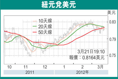 另一方面,歐元兌紐元交叉匯價在上周持穩於1.5880水平之上後,已進一步走高至本周二1.6255附近的兩個多月來高位,該情況反映歐元兌紐元交叉匯價從去年11月下旬的1.81水平大幅下挫至上月中的1.5590水平後,部分投資者現階段已是較為傾向逢低回補歐元兌紐元的空倉盤,這亦對紐元匯價構成一定的下調壓力。故此預料紐元匯價將反覆走低至80.60美仙水平。