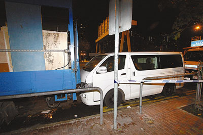 ■懷疑毒駕男子的客貨車泊車時失控撞向前面貨車車尾。香港文匯報記者鄧偉明 攝
