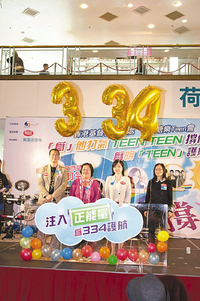 香港基督教服務處觀塘樂Teen會昨日舉行「『為』他打氣 TEEN TEEN 撐你計劃─為明Teen護航禮」,為考生送上祝福,包括讓市民寫上「打氣心聲紙」,又請來不同社區人士到場表演如樂隊、舞蹈及沙畫等,場面熱鬧。■香港文匯報記者 劉景熙 大會供圖