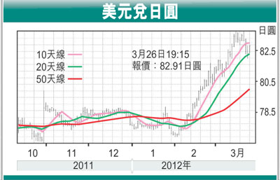 美元兌日圓匯價上周受制於84.10附近阻力後,其走勢已略為偏軟,在跌穿83.00水平後,更一度於上周五短暫失守82.00水平。到本周初時段,美元兌日圓已逐漸作出反彈,並且更一度反覆走高至82.90附近。雖然日本央行行長白川方明已表示要警惕超寬鬆貨幣政策所衍生的缺點及副作用,但由於日本財金官員現時仍較為傾向消除通縮的情況下,日本央行現階段所推行的超鬆寬措施的力度將不會輕易有所減退,再加上部分投資者還依然是持續逢高沽出日圓,因此美元兌日圓匯價暫時將不會遇到太大的回吐壓力,而美元兌日圓本周初能迅速重上82.90水平,亦已反映出該個狀況,所以預期美元兌日圓將會續有反覆上調空間。
