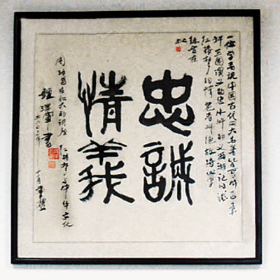 在謝華駿辦公室的牆上,醒目地掛著「忠誠情義」四個蒼勁有力的大字。