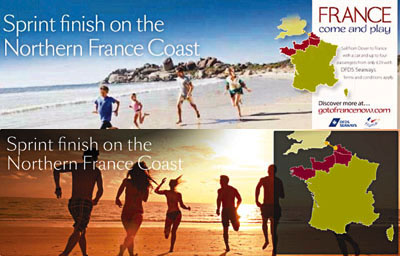 ■倫敦奧運將於今年中舉行,法國旅遊局為了在期間吸引英國遊客,豪花50萬英鎊(約616萬港元)製作了一系列海報,在英國報章和地鐵隨處可見。然而,當局聘請的英國廣告公司犯大錯,海報上的海灘(上)竟然來自南非開普敦。旅遊當局發現錯誤後,在網站換掉圖像(下)。 《每日郵報》