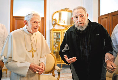 教宗本篤十六世前日結束一連3日的古巴訪問,訪問時多次敦促當地政府求變,又於首都哈瓦那「革命廣場」舉行大型露天彌撒,其後與前總統卡斯特羅短暫會晤(見圖)。離開前,他譴責美國對古巴實施多年禁運,阻礙當地社會發展,對古巴人民並不公平。