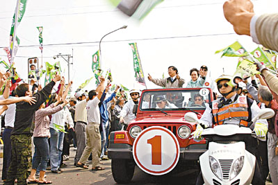 ■2004年的槍擊案,扭轉了當年大選的形勢。圖為案發前扁、呂沿街掃票。資料圖片