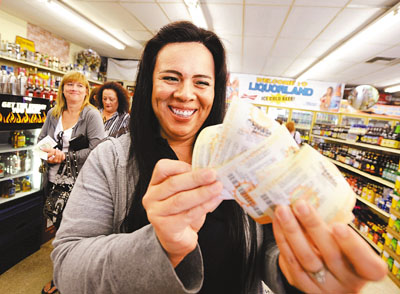 ■購得彩票的顧客喜上眉梢,希望能中橫財。法新社