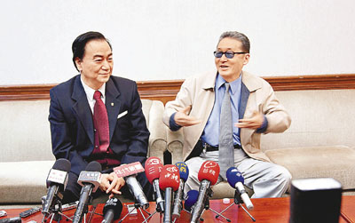 香港文匯報訊 今年2月,台灣前行政當局負責人郝柏村投書《聯合報》,稱教科書「扭曲至積重難返的地步,偷渡『台灣中國,一邊一國』的政治用意」,台灣中小學教育課綱未清理「台獨」意識的現狀引發海內外關注。台灣知名作家李敖(圖右)1日表示,台灣歷史教科書的修改,首先要改組陳水扁時期在教育界安置的杜正勝式團隊。