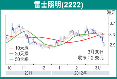 民企洗倉潮有蔓延跡象,投資者似變成「驚弓之鳥」,稍有風吹草動,即惹來龐大沽壓。影響所及,就連一些有業績支持的個股也遭「池魚之殃」,就以雷士照明(2222)為例,該股上周初派發的成績表雖對辦,派息也有所增加,惟股價卻依然連日受壓,最後以2.88元報收,全周共跌0.34元或10.56%,但無疑也提供趁低收集的機會。