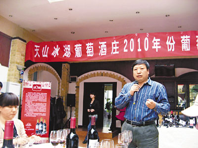香港文匯報訊(記者 李小平 烏魯木齊報道)「遠山近水,美酒飄香,暢遊西域葡萄酒歷史,品高雅人生」,新疆天山冰湖葡萄酒莊日前舉行「2010年份葡萄酒推介會」,冰湖印月干紅葡萄酒、冰湖干紅葡萄酒、冰湖雪麗葡萄酒三款葡萄美酒,吸引200多名業界人士踏雪而來。