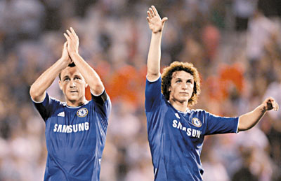 ■泰利(左)缺陣,大衛雷斯(右)在後防擔大旗。 美聯社