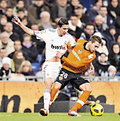 ■皇馬翼鋒迪馬利亞(左)將與華倫左閘佐迪艾巴(右)交鋒。 法新社
