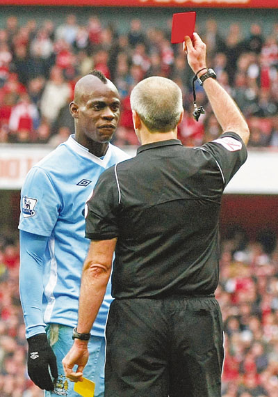 ■巴洛迪利領紅被逐。美聯社