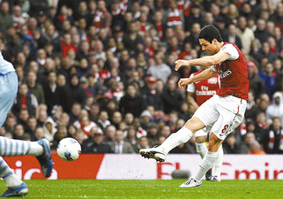 說回比賽,阿仙奴主場憑藉著阿迪達終場前的遠射破門,1:0力克曼城,幾乎結束了對手的爭冠希望的同時,也讓爭奪前3的優勢重新回到了自己的手中。雲加也對這記美妙的入球送上了溢美之詞:「這個球入得非常漂亮。入球給我們帶來了3分,我們理應得到這3分。我們在場上佔據了主動。我總是有預感,入球會來的,然後它就來了。」目前阿仙奴以32戰61分,2分壓倒熱刺升上第3。 ■香港文匯報記者 梁啟剛