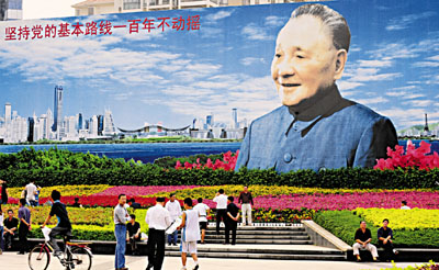 ■市民在深圳市深南大道旁的鄧小平畫像前廣場上休閒。新華社
