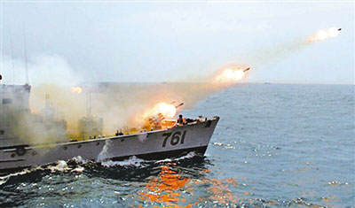「編隊展開攻擊隊形,各艇迅速進入攻擊陣位!」周強國接連下達指令。各艇迅速變換隊形,以最快速度進入戰鬥航向,開足馬力,進入攻擊程序,在茫茫大海布下天羅地網。隨著周強國一聲令下,從不同方向、不同距離發射的數十枚火箭深彈直奔目標,刺向「敵」潛艇。剎那間,一排排高聳的水柱在海面上衝天而起。此時,東方的天空已破曉。