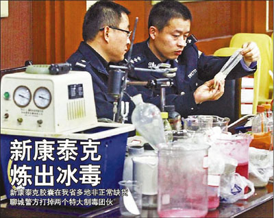 香港文匯報訊(記者 于永傑、實習記者 滕飛 濟南報道)山東警方日前破獲首例利用普通感冒藥「新康泰克」膠囊提煉冰毒案件,涉案的2個製毒團伙採用此種辦法製造出60餘克冰毒。本報記者在濟南市面多個藥店觀察發現,目前新康泰克膠囊在當地已經基本停售。