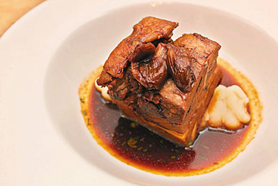 向來用心炮製出每道富傳統英式風味菜餚的The Pawn特地推出全新菜單,以頭盤蘋果酒燴伯克郡豬面頰掀開序幕,用雪利酒和紅糖醃製,配酸豆和爽脆馬鈴薯。另有從法國旺代入口的香煎野鴿配白松露,伴上馬鈴薯、西芹和紅菜頭。至於主菜共有八款,包括自由牧養的伯克郡豬肉排伴脆脆,塗上洋蘇葉和顆粒芥末醬,配以百里香肉汁和澳洲青蘋果醬。另一主菜慢煮羊肩,用上65度慢煮7小時,相當花工夫,汁料有一種酒的香味,使用迷迭香及大蒜濃湯。