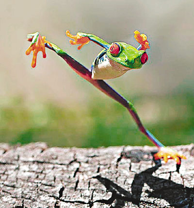 印尼著名攝影師吳士階(譯音)擅長微距生態攝影,其最新作品是一隻懂得像李小龍耍功夫的南美紅眼樹蛙。牠高舉右腳,左腳穩坐樹木上,十足十李小龍踢腿動作,還懂得擺出李小龍招牌姿勢。吳士階說:「我第一眼就覺得牠像極李小龍,人人都愛這張照片,因為大家都愛李小龍。」 ■ 《每日郵報》