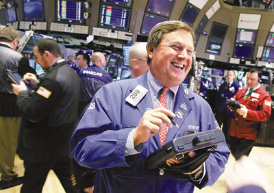■多重消息帶動美股重上萬三,交易員興奮。 美聯社
