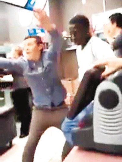 備受圍攻的兩三名職員在敵眾我寡下仍然專業克制,企圖如常工作,又嘗試請衝入廚房的青年離開。但情況愈來愈失控,職員只好按警鐘,召警員到場協助。