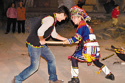 ■篝火晚會上,尹子維與燕子及瑤族朋友跳起當地的民族舞蹈。