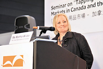 香港文匯報訊(記者 陳遠威)貿發局前日於香港家庭用品展內,舉辦「拓展寵物用品市場-加拿大及中國內地」研討會,會上邀請行業專家分享寵物市場的最新數據。加拿大寵物食品商會總裁Martha Wilder(見圖)表示,加拿大及內地的寵物用品市場發展潛力優厚,而加拿大的寵物食品安全條例不斷被更新,業界需要注意相關條例的影響。