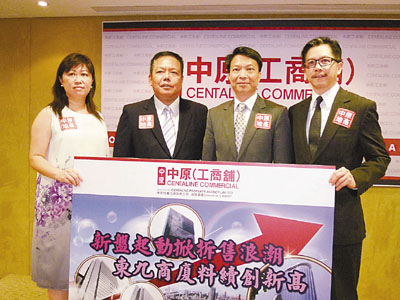 ■中原(工商舖)營運總監潘志明(右二)、中原(工商舖)寫字樓部董事鄭繼標(左二) 表示,看好未來半年整體商廈買賣走勢。 香港文匯報記者周穎 攝