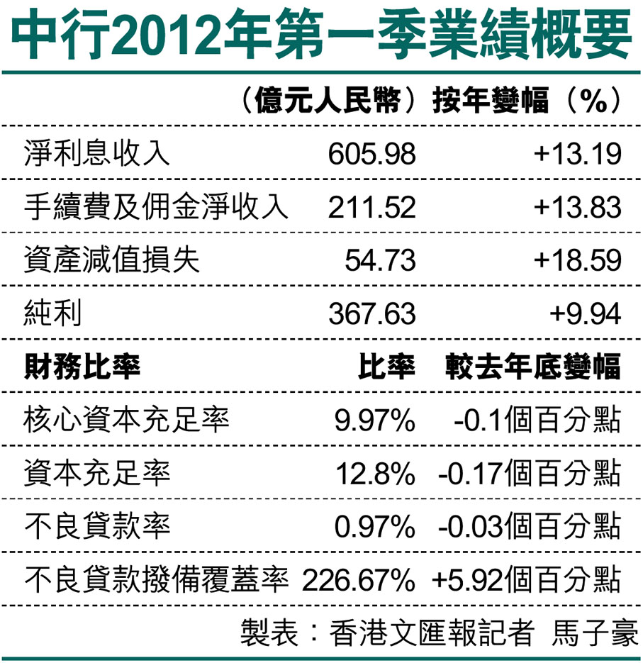 中行2012年第一季業績概要 (圖)