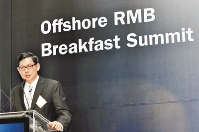 ■金管局總裁陳德霖於巴西聖保羅舉行的研討會上,推介香港作為離岸人民幣業務中心所提供的服務。