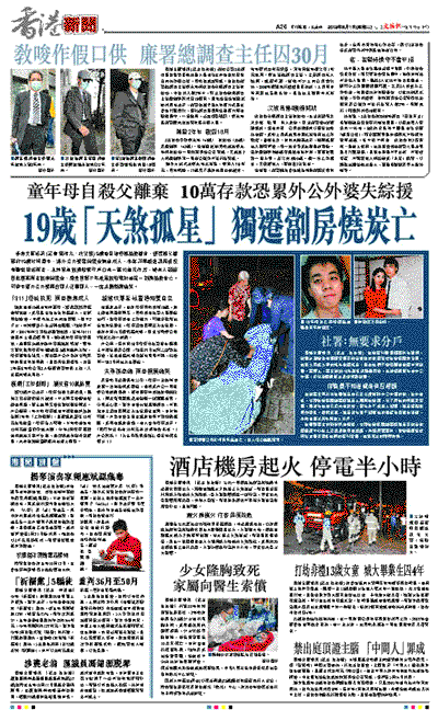 燒炭自盡19歲青年林豪傑,據悉原擁幸福美滿家庭,其母是在港出生的福建人,在鄉間結婚後,申請內地丈夫來港團聚,誕下2子女,夫婦經營小生意樂也融融,惟好景不常,2001年林父另結新歡致家變,當年「911」美國本土遇恐襲同日,僅9歲的傑仔放學回家,赫揭發34歲亦姓林母親燒炭離世。翌年父更突抱同傑仔年僅2歲至3歲的胞妹失蹤,傑仔頓淪為孤兒,須寄居外公外婆於荃灣眾安街租住的板間房,並依賴綜援過活,直至5年至6年前公孫3人始獲房署安排上樓,入住福來邨永隆樓。