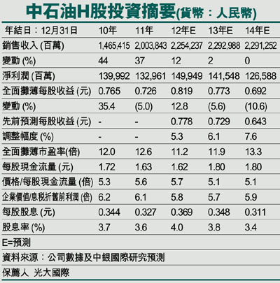 ¡@¾¨ºÞ¤¤°ê¥Ûªo(0857)1©u«×²b§Q¼í¶È¦P¤ñ¼Wªø6%¡A¦ý¤wÀu©ó¥«³õ¹w´Áªº³æ¦ì¼Æ¤U·Æ¡C®t²§¥Dn¨Ó¦Û·Òªo·~°ÈÁ«·l¤p©ó¹w´Á¡Cų©ó¬Õ§Q¶W¹w´Á¡A§Ú̱N2012-14¦~¬Õ§Q¹w´ú¤W½Õ5%-8%¡C§Ú̺û«ù¹ï¤¤°ê¥ÛªoAªÑ©MHªÑªº¶R¤Jµû¯Å¡A¨Ã¤p´T½Õ¾ã¤F¥Ø¼Ð»ù¡C