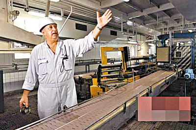 ■船上外籍工作人員介紹魚罐頭生產情況。網上圖片
