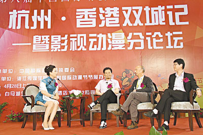 ■玉郎集團與杭州餘杭旅遊投資集團簽訂協議,投資25.1億元建動漫巨星樂園。圖為黃玉郎在杭州出席動漫交流論壇。
