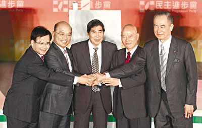 ■黨主席候選人蘇煥智(左起)、蘇貞昌、蔡同榮、許信良、吳榮義。中央社