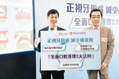牙周病在香港十分普遍,港大去年的研究發現,58%的12歲香港學童有牙石等病徵,6年後、即學生18歲後增至96%。港大牙醫學院牙周病學教授金力堅表示,牙周病早期毫無徵狀,經常被市民忽略,加上市民日常口腔護理不當及生活習慣等問題,令病情加重。