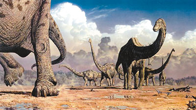 牲畜放屁排出溫室氣體甲烷,是全球暖化元兇之一。英國利物浦約翰穆爾斯大學等機構研究發現,在距今約2.5億年到6,500萬年的中生代、恐龍統治地球時(見圖),雷龍等蜥腳類草食巨型恐龍放屁所排放的甲烷量,相等於當今自然和人類活動的溫室氣體總和,在當時引發全球暖化。