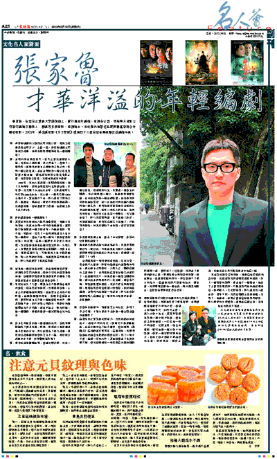 答:年紀慢慢大了以後,發覺自己不是很適合做幕前演員。因為性格的關係,我很容易緊張,上台之前那種焦慮的情緒,往往把自己弄得不知所措;在面對鏡頭的時候,也經常會忘記台詞。後來知道自己不是一個做演員的材料,與其勉強下去,倒不如專心寫劇本。寫劇本的過程帶給我不少樂趣,到目前為止,對我來說,做一個編劇,是電影圈裡一個比較適合我的位置。