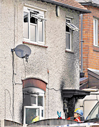 ■房屋外牆熏黑,消防入屋調查。 路透社
