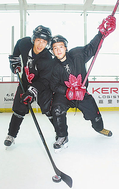 ■黃浚軒和蔡皓光全情投入冰球運動。 香港文匯報記者黃舒慧 攝