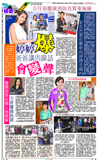 古仔自言是愛新科技的人,又笑言當了代言人後變了Sales,很多朋友都會致電向他訂貨。古仔透露稍後會與劉青雲開拍一部關於消防員的戲,戲中他會飾演消防員,由於他曾拍攝電視劇《烈火雄心》,知道這類戲的危險性,所以會做足準備,買重保險,他說:「戲中不乏動作戲,除要救火外,還有塌樓及潛水戲份,每樣都有一定危險,所以今次都要做一系列的訓練同買重保險。」談到近日有報道指有妙齡女歌手報稱在錄音室被強姦,古仔對此表示不知情,問到他可有聽聞過類似事件?他笑道:「我入錄音室唱歌個頭都大埋。」