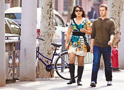 ■朱仔在fb上市後才迎娶女友Priscilla,被讚在法律上聰明。圖為二人3月拍拖遊上海。 路透社
