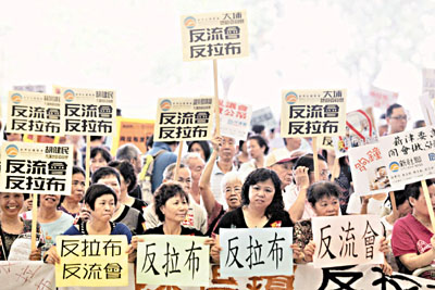 ■議員和社會團體紛紛對「拉布」表達強烈不滿,民間訴求在抗議標語上得以反映。 資料圖片