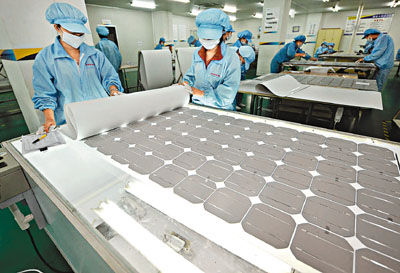 ■自去年下半年以來中國在高新技術、新能源領域的產品遭到美國多次反補貼調查。圖為浙江一家新能源公司生產單晶矽電池片。資料圖片