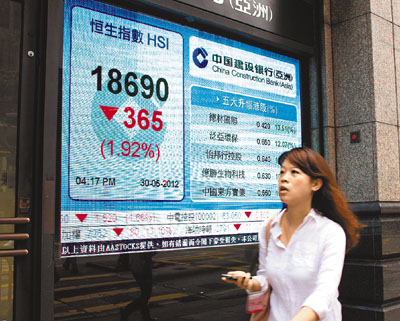 雖然周二美股造好,但受上述消息打擊,昨日瓻一開始已跌158點,並為全日的最高位。之後瓻急速下挫,最低曾跌451點,收市跌幅則稍微收窄至跌365點,報18,690點。昨日港股主板成交額為553億元,較前日升市的490億元成交額增加13%。國企指數昨日跌幅則相對較小,收市報9,690點,跌168點,跌幅為1.7%。