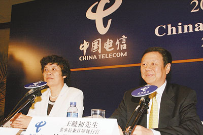 ■中國電信董事長兼首席執行官王曉初(右)和執行副總裁兼財務總監吳安迪(左)。 張偉民 攝
